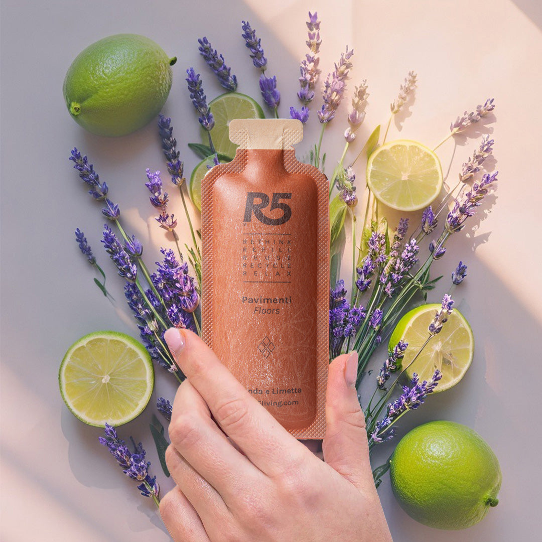 R5 Sols est végétalien, non testé sur les animaux et réduit les déchets. Les agents tensioactifs sont d'origine végétale, dérivés, dans le cadre d'une économie circulaire, de déchets issus de la transformation du maïs, de la canne à sucre et de la betterave. Les tensioactifs sont biodégradables (règlement 648/2004/CE). Colorants alimentaires. Tous nos produits sont fabriqués en Italie.