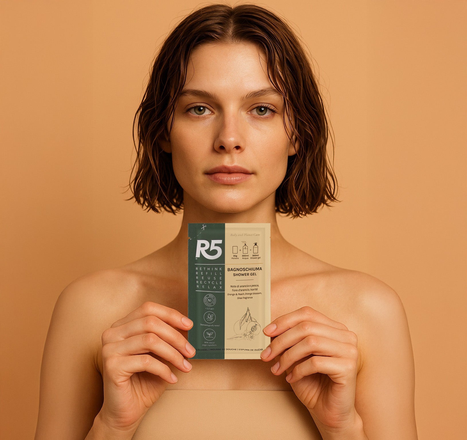 Scopri un nuovo modo per prenderti cura di te. Perché sceglierlo? 🌍♻️Sapevi che fino all’80% di un gel doccia tradizionale è solo acqua? 💦 Ma l'acqua possiamo prenderla dal nostro rubinetto! Con R5 Living, ci concentriamo solo sugli ingredienti attivi e altamente efficaci, per una cura della pelle su misura, senza sprechi e senza plastica monouso.