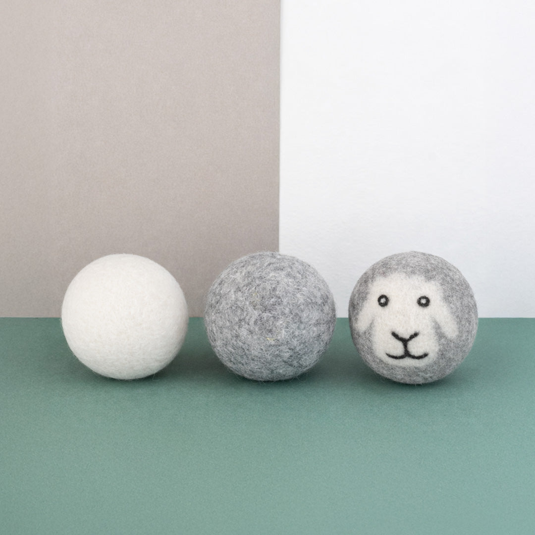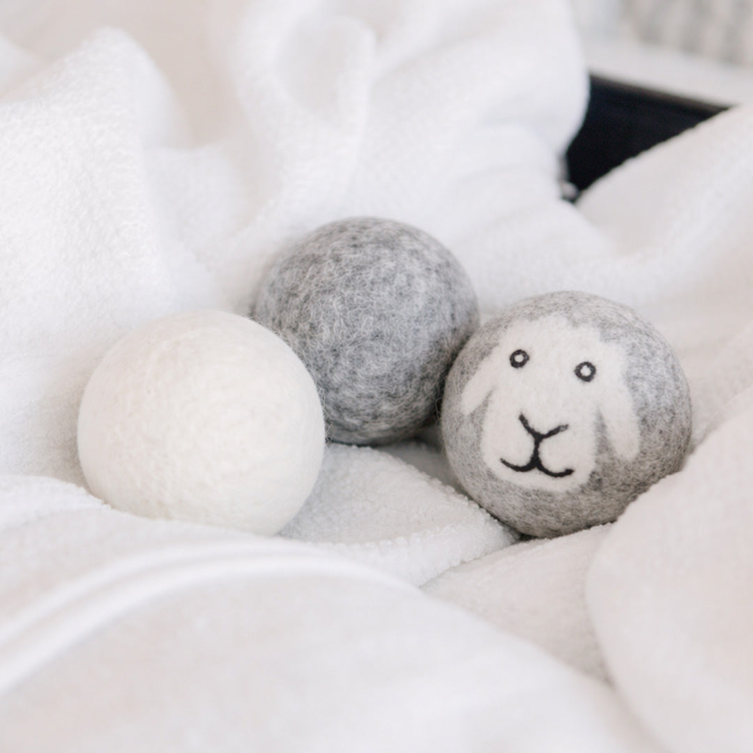 Le Palline Asciugatrici sono un ammorbidente naturale e organico, realizzate a mano con lana al 100%. Sostituiscono l’ammorbidente tradizionale, antipiega, sono completamente riutilizzabili per oltre 1.000 carichi e riducono il tempo di asciugatura (assorbono l'umidità assorbendo fino al 30% del loro peso in acqua). Prive di plastica, senza prodotti chimici, atossiche e ipoallergeniche sono perfette per chi ha la pelle sensibile e per i bambini. Per un bucato profumato basta aggiungere qualche goccia (3-5) del vostro olio essenziale preferito ad ogni pallina prima di ogni ciclo. 100% Lana naturale Set da 3 Palline (colori assortiti - pecora, grigio, bianco).