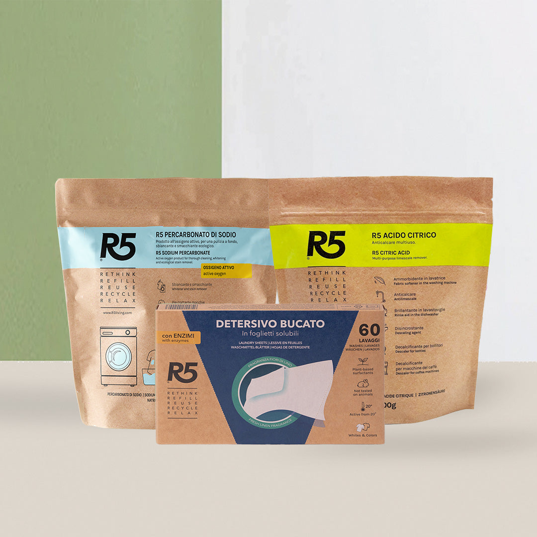 Contiene le alternative R5 pratiche, innovative e efficaci a detersivi e smacchiatori tradizionali.